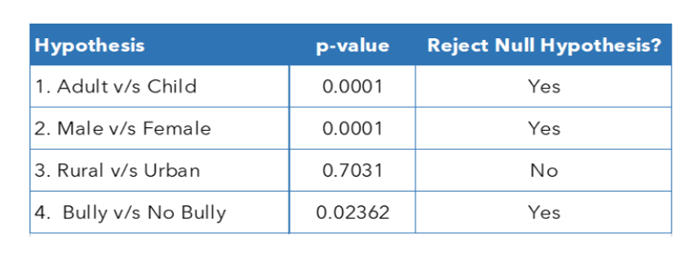 H0: There is no difference in bullying for children w/ or w/out eczema
